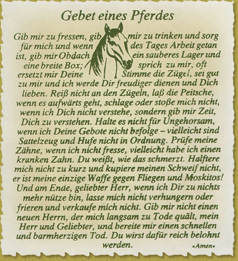 Bei der Haltung und Pflege der Pferde orientieren wir uns inhaltlich an dem „Gebet eines Pferdes“.